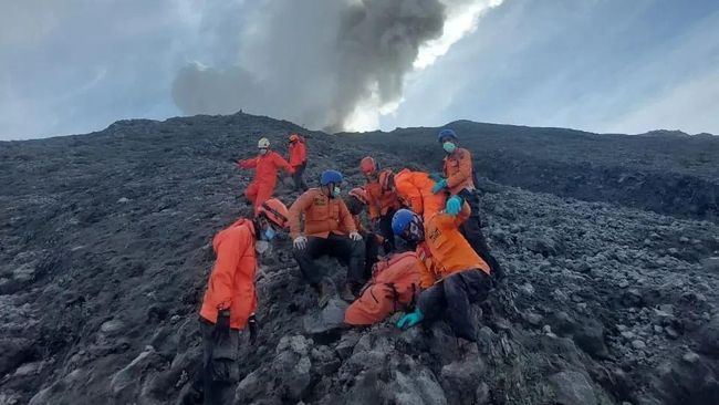 Potret Petugas Evakuasi Korban dari Atas Gunung Marapi