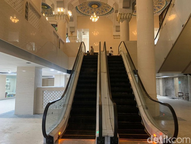 Medan - Meski pembangunan belum 100% rampung, Masjid Agung Medan sudah mulai difungsikan. Bangunan barunya pun terlihat begitu megah dan juga ada lift serta eskalator.
