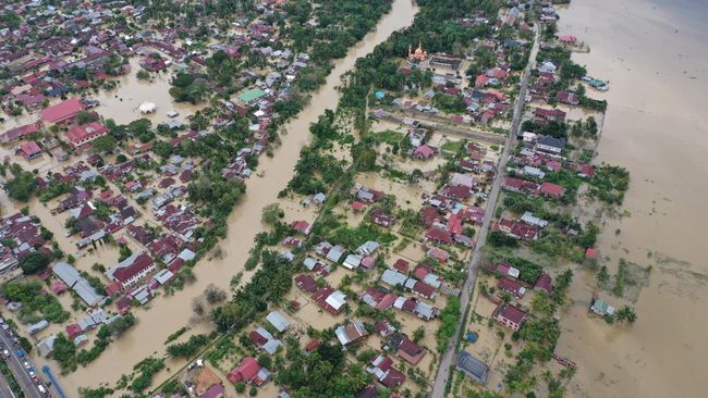 Aceh Utara - Kawasan Lhoksukon, Aceh Utara, Aceh, terendam banjir akibat curah hujan yang tinggi. Begini penampakannya.