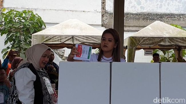Kahiyang Ayu ketika memasukkan surat suara ke kotak suara yanga ada di TPS. (Goklas Wisely/detikSumut)