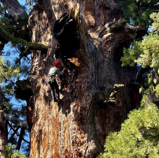 Potret Peneliti saat Memeriksa Kesehatan Pohon Terbesar di Dunia