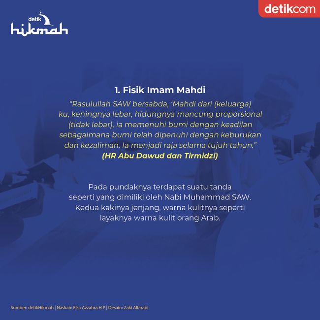 Medan - Salah satu tanda dekatnya hari Kiamat adalah munculnya Imam Mahdi. Kemunculannya dijelaskan dalam beberapa hadist dari Rasulullah SAW. Kenali ciri-cirinya.