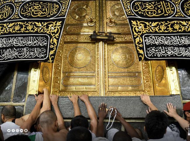 Multazam adalah tempat yang terletak di antara Hajar Aswad dan pintu Ka'bah dengan jarak kurang lebih dua meter. Hajar Aswad adalah batu hitam yang terletak di salah satu sudut Ka'bah, tepatnya di Rukun Yamani (Foto: Dok. Haramain Sharifain/Twitter @hsharifain)