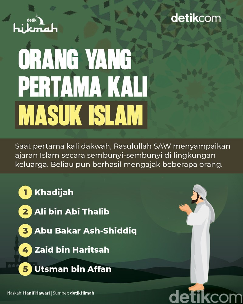 Siapa Orang-orang yang Masuk Islam di Awal? BAGIKAN URL telah disalin Sejak Nabi Muhammad SAW menerima wahyu, ia menyebarkannya Islam secara sembunyi-sembunyi. Ini lah 5 orang pertama yang masuk Islam. (Foto: Fakhry/detikcom)