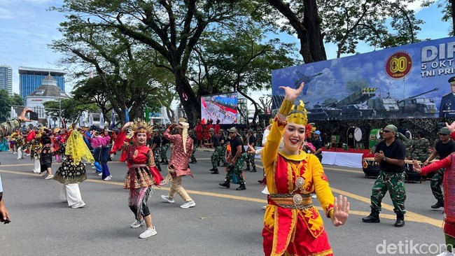Medan - Perayaan HUT ke-80 TNI digelar di Lapangan Merdeka Medan, Minggu (5/10/2025). Warga berbondong-bondong untuk menyaksikan pertunjukan-pertunjukan yang disajikan.