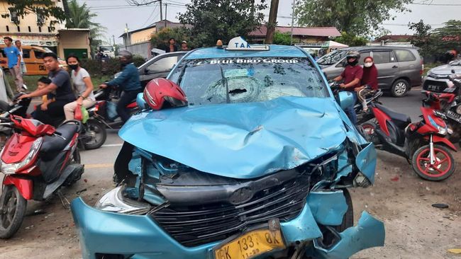 Di tengah perjalanan, sopir baling ke karah kiri dan menabrak Suani serta Galih. Selain itu, sopir taksi Bluebird juga menabrak mobil merek Honda Jazz BK 1510 GY yang sedang diparkirkan oleh warga bernama Muhammad Pardillah Syam.
