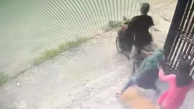 Sewaktu ingin memutar motor ke jalan raya, aksinya langsung kepergok oleh dua wanita. Ada pun salah satu wanita jelas terlihat sempat menarik baju dan bagian belakang sepeda motor.