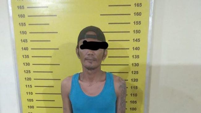Dilihat detikSumut, Sabtu (25/5/2022), oknum SPSI itu difoto dengan latar belakang ukuran tinggi badan. Reza terlihat memakai singlet atau kaos kutang berwarna biru saat berada di Polsek Percut Sei Tuan.