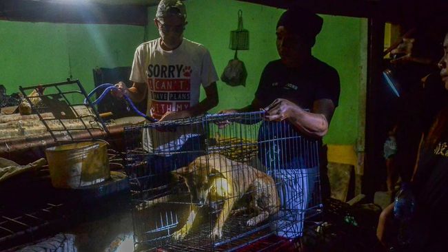 "Daging itu ditampung dengan tujuan untuk dijual ke rumah makan non muslim. Saat ditemukan kondisi anjing sehat dan satu ekor hamil. Anjing-anjing itu didapat dari warga yang mengantar," katanya.
