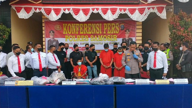 Kapolres Samosir AKBP Josua Tampubolon mengungkapkan kronologi kejadian Marwan alias Begu membunuh pasangan suami istri Jimmi Gultom (55) dan Henny Kartini (54), di Simanindo, Samosir.