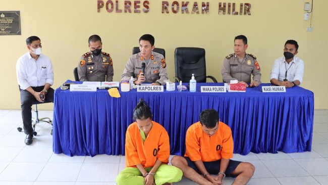 "Hasil pemeriksaan dan keterangan dari pelaku, motif pembunuhan karena sakit hati. Kedua pelaku ini saling suka, tetapi mau dipisahkan sama keluarga korban," imbuh Kasatreskrim Polres Rohil, AKP Eru Alsepa.
