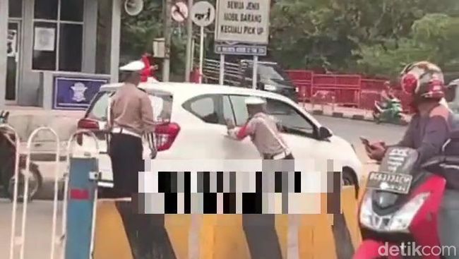 Seorang polantas kemudian terlihat usai bercakap dengan pemobil warna putih memegang satu benda sambil berjalan ke belakang, meninggalkan pengendara mobil tersebut. Saat polantas tersebut berada di belakang, entah tak tahu apa sebabnya tiba-tiba pengendara mobil itu mengeluarkan kepalanya dari jendela langsung memaki dan menunjuk-nunjuk ke arah petugas tersebut.
