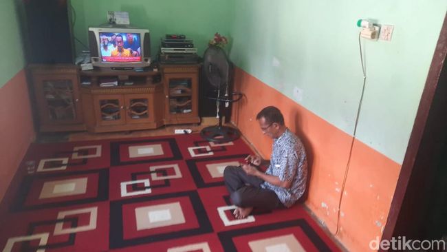 Dilihat detikSumut, Jumat (19/8/2022), Samuel terlihat duduk di depan televisi sambil melihat konferensi pers Mabes Polri. Dia terlihat menonton sendiri.