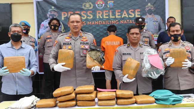 Polres Mandailing Natal (Madina) menangkap dua pria yang kedapatan membawa ganja seberat 19 kg lebih. Keduanya pun kini diamankan di kantor polisi untuk diproses lebih lanjut.