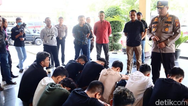 Belasan remaja itu ditangkap dini hari tadi beserta sejumlah barang buktinya. Setelah ditangkap, mereka digiring ke Mapolresta Pekanbaru untuk diperiksa.