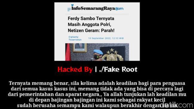 Situs PN Banda Aceh yang diretas beralamat yakni pn bandaaceh.go.id/readme.php. Laman situs itu menampilkan tangkapan layar berita berjudul 'Ferdy Sambo Ternyata Masih Anggota Polri, Netizen Geram: Parah!
