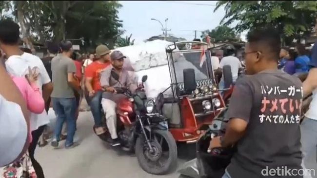 Dalam rekaman yang dilihat detikSumut, Rabu (21/9/2022) terlihat puluhan warga baik pria maupun wanita beramai-ramai mengulingkan puluhan ballpress dari dalam truk, kemudian dinaikkan ke becak bermotor dan membawanya pergi.