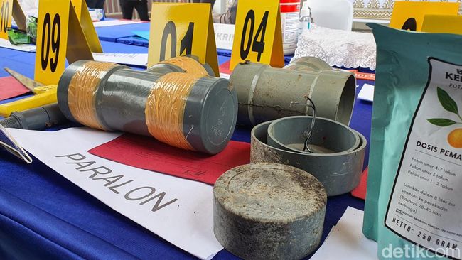 Setelah melakukan penangkapan, polisi kemudian menggeledah rumah pelaku. Dari rumah pelaku didapati sebuah bom paralon.