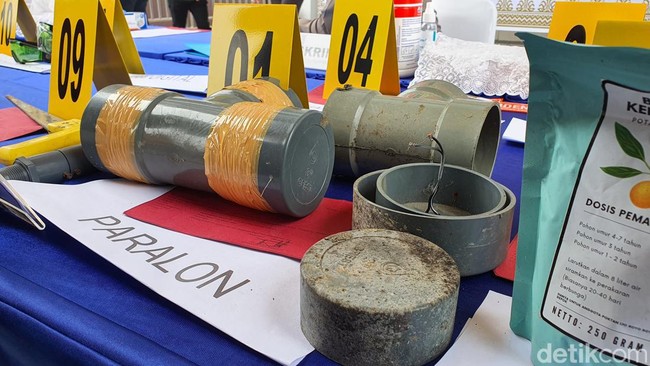 Bom yang dirakit pelaku pakai paralon itu lalu diledakkan di depan rumah warga. Hal itu terdengar hingga radius 1 km dan bikin warga kaget.