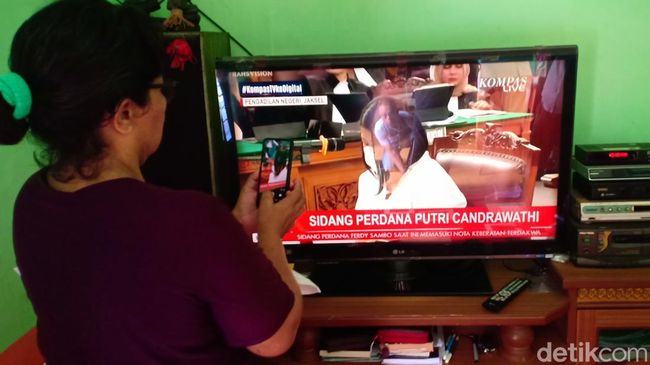 "Ini kelopak matanya memang sembab terus ya," ucap Rosti saat menyaksikan sidang perdana Putri Chandrawathi melalui siaran langsung di kediamannya, Desa Suka Makmur, Sungai Bahar, Muaro Jambi, Senin (17/10/2022).