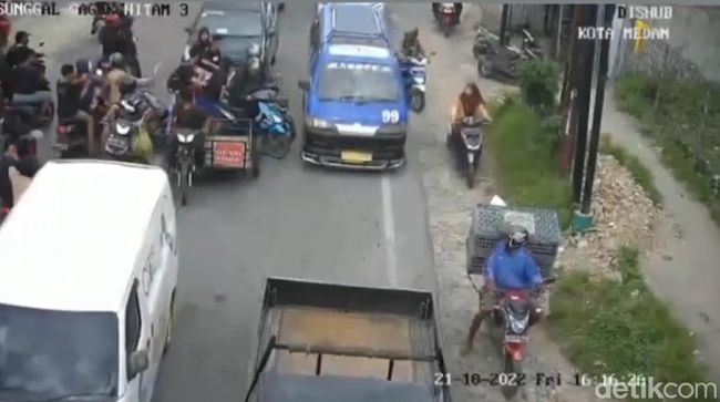 Dalam video yang dilihat detikSumut, Jumat (28/10), terlihat awalnya dua pengendara sepeda motor tersebut terjebak kemacetan di jalan tersebut. Dari arah yang berlawanan, muncul puluhan siswa yang sebagian memakai seragam pramuka.