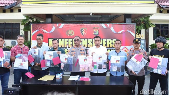 Para pelaku, ditangkap pada Rabu (9/11/2022) malam di Kecamatan Rawa Jitu, Kabupaten Tulang Bawang. Dari tangan para pelaku, petugas menyita barang bukti berupa 19 unit handphone (HP), 55 buah sim card, kotak HP, tas, uang tunai sebanyak Rp 4,7 juta dan 80 gram emas.