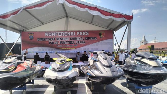Polda Sumatera Utara (Sumut) bakal memamerkan sejumlah barang bukti diduga milik bos judi online, Apin BK. Salah satu barang bukti yang dipamerkan itu berupa jetski.