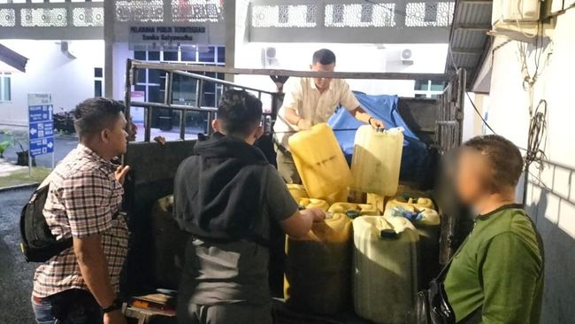 Pelaku disebut tidak berkutik saat ditangkap. Di dalam mobil terdapat delapan jeriken dan sebagiannya sudah diisi minyak.