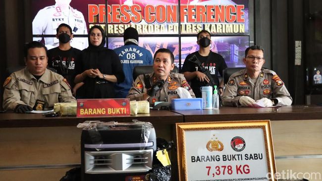 "Pelaku RJK ditangkap pada Minggu (22/1) lalu di salah satu hotel. Dari tangan pelaku anggota menyita 7,3 kg sabu asal Malaysia," kata Kapolres Karimun, AKBP Ryky W Muharram, Jumat (27/1/2023).