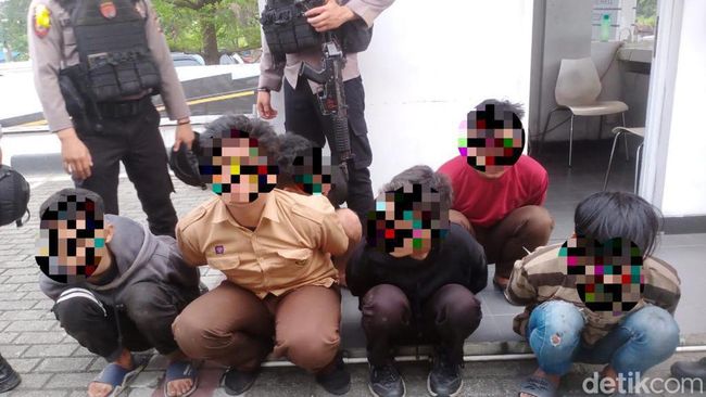 Polisi menangkap enam pelajar yang akan melakukan tawuran di Jalan Ngumbang Surbakti, Medan, Sumatera Utara (Sumut). Para pelajar ini turut membawa sejumlah senjata tajam.