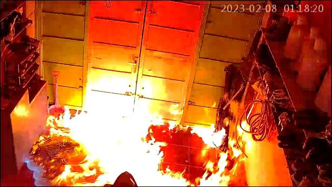 "Saya coba kembali lihat CCTV di dalam gudang itu, nah di situ kan api cepat kali menyambar lantai gudang itu seperti disiram bensin," ujarnya.