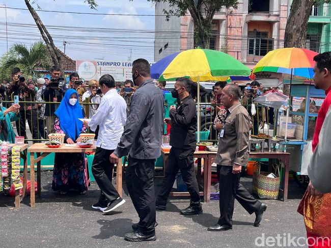 Presiden Joko Widodo (Jokowi) mengunjungi Pasar Halat di Medan, Sumatera Utara. Di sana, Jokowi memberikan sejumlah bantuan, seperti uang kepada pedagang.