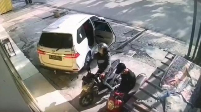 Ia menyampaikan, aksi kejahatan tersebut baru diketahuinya ketika mengecek kamera CCTV. Rupanya pelaku menutupi motor yang hendak dicuri dengan memberhentikan mobil guna menghalangi pandangan.