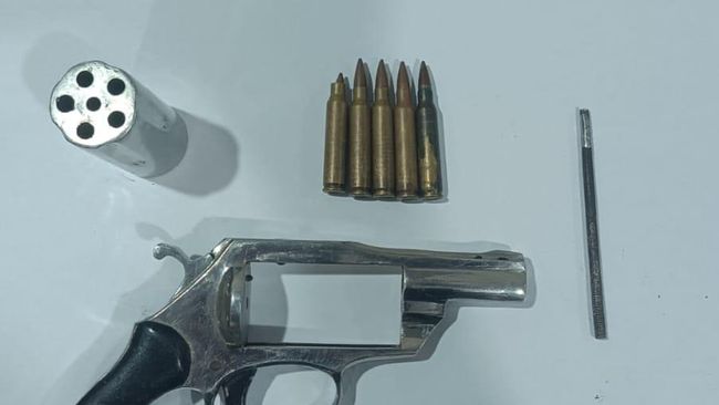 "Saat kita tangkap anggota menemukan sepucuk senjata api rakitan laras pendek jenis revolver warna silver bergagang kayu warna hitam berikut 5 butir amunisi kaliber 5,56 mm," kata Ikang.