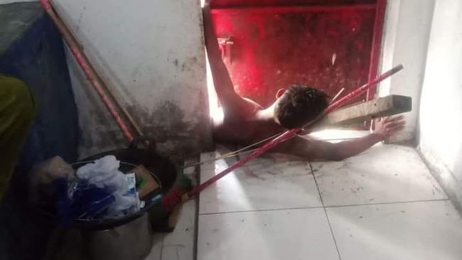 Dalam rekaman yang dilihat oleh detikSumut, Kamis (9/3/2023), tampak pria itu sedang kesakitan dan telah lemas. Diduga ia telah terjebak selama 6 jam dan gagal keluar dari jepitan pintu besi di rumah korbannya itu.