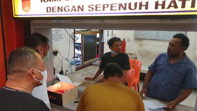 Seorang pria bernama Wangsa (48) membawa kue ulang tahun ke petugas piket Unit Reskrim Polrestabes Medan. Kue ulang tahun itu diperuntukkannya ke penyidik.