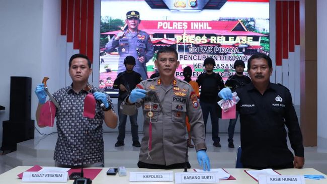 "Saat diintrogasi, AK menunjukan pelaku lainnya inisial H dan B, bersama personel Polsek Tembilahan Hulu, dilakukan upaya penangkapan terhadap H. Mamun pelaku melakukan perlawanan berlari menyerang ke arah anggota menggunakan senjata tajam badik," imbuh Kasat Reskrim Polres Inhil, AKP Amru Abdullah.
