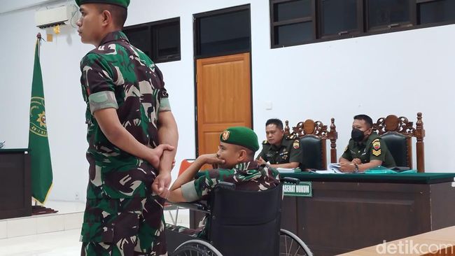 "Sebelum membacakan dakwaan, saya tanya dahulu kepada Yalpin. Kenapa kaki nya, apakah tahan berdiri mendengarkan dakwaan dari oditur," tanya hakim ketua ke Yalpin.