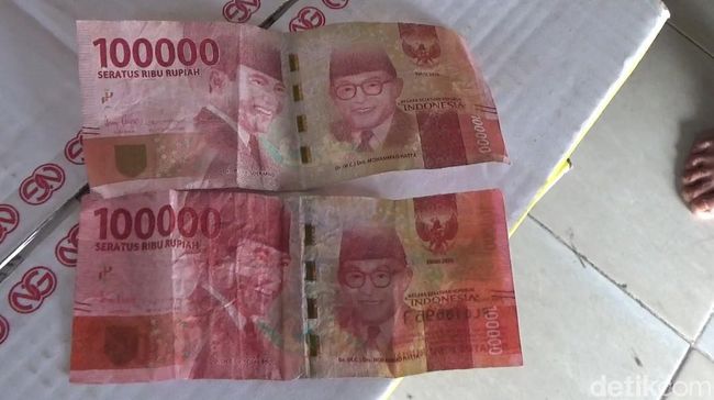 "Sebenarnya waktu pegang uang itu sudah agak curiga, uangnya-kan lain dengan uang yang asli tapi ya namanya enggak teliti, ya sudah kembaliannya dikasih, nah jadi rugi lah sayo 100 ribu," ujarnya.