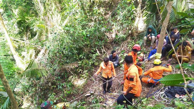 "Korban terjatuh ke jurang sedalam 80 meter. Jasad korban ditemukan berjarak sekitar 15 meter dari lokasi awal. Korban yang berada di dalam sungai kemudian dievakuasi menggunakan tali ke atas tebing dan dibawa menggunakan ambulans bersama pihak keluarga menuju rumah duka," pungkasnya.