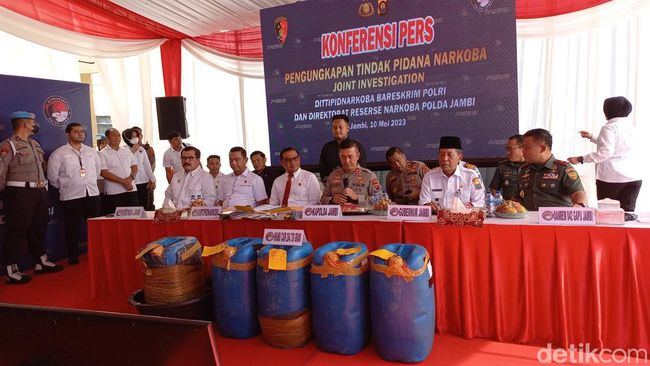 Polda Jambi dan Bareskrim Polri berhasil mengungkap peredaran 264 kilogram sabu cair. Dari hasil penyelidikan, sabu cair yang disita dari Warga Negara Asing (WNA) asal Iran, NB itu ternyata bahan baku pembuatan sabu dalam bentuk kristal.