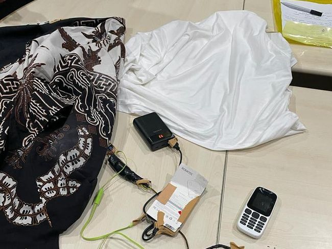 Saat pengawas melakukan prosedur pemeriksaan menggunakan metal detector, didapati beberapa alat rekam yang dipasang di badan mereka.