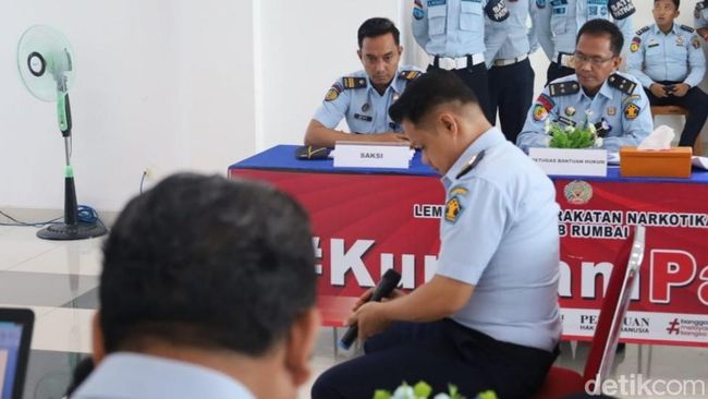 Sidang etik tertutup dilaksanakan oleh majelis Kode Etik Kantir Wilayah Kemenkum HAM Riau di Lapas Narkotika Kelas II B Rumbia. Sidang dipimpin langsung Kepala Divisi Pemasyarakatan Kanwil Kemenkumham Riau, Mulyadi.