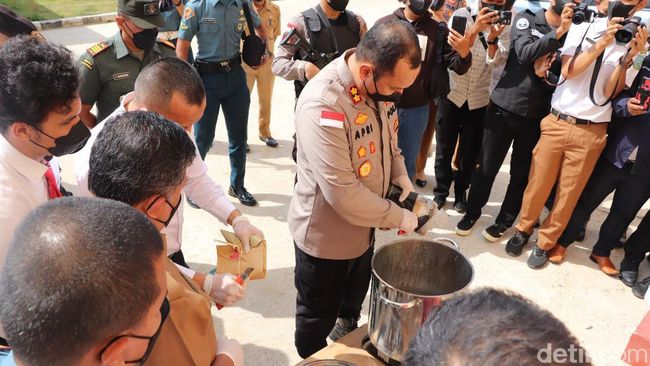 "Pemusnahan barang bukti narkotika jenis kokain dengan jumlah berat total seberat 1.212,4 gram itu dilakukan dengan cara direbus air aki. Setelah dimusnahkan kokain itu dibuang ke dalam lubang galian," kata Kapolres Kepulauan Anambas AKBP Apri Fajar Hermanto, Senin (5/6/2023).