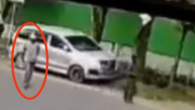Kemudian, ia tampak menggunakan becak motor untuk meninggalkan lokasi. Ciri-ciri pria ini mengenakan topi, kaus, dan bercelana panjang. Pria ini cukup tinggi dan kurus.