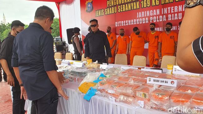 "Hasil ungkap kasus peredaran narkotika jenis sabu sebanyak 169 Kg dan ekstasi 11.712 butir. Ini jaringan internasional," kata Nandang, Senin (12/6/2023).