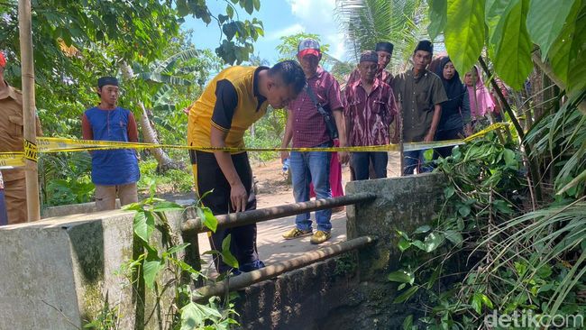 Polisi yang mendapatkan laporan langsung melakukan olah TKP. Korban ditemukan tergantung di bawah jembatan.