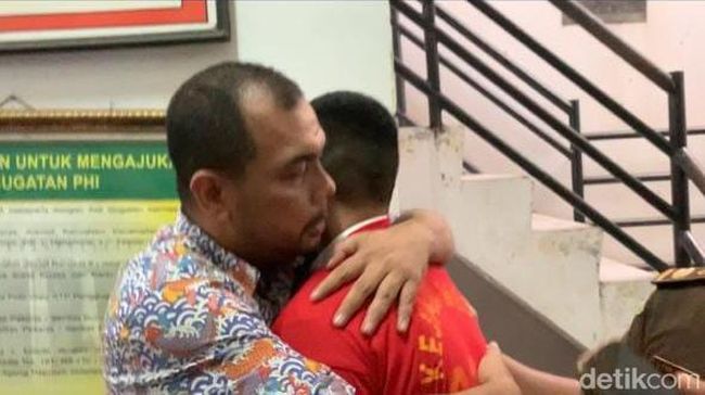 Setelah itu, Aditya menghampiri dan menyalami ayah Ken Admiral, Zulkifli. Ayah Ken lantas memeluknya.