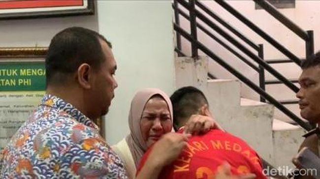 Medan - Ibu dari Ken Admiral, Elvi, menangis usai memberikan kesaksian di Pengadilan Negeri (PN) Medan. Air mata Elvi tak terbendung saat anak AKBP Achiruddin, Aditya Hasibuan mendatangi, memeluk, dan meminta maaf kepadanya.