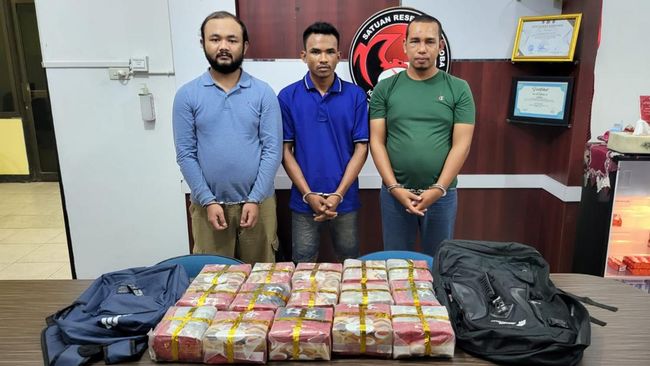 Selain 15 kg sabu, polisi menangkap tiga orang berinisial AH (25), GR (29) dan TIS (23). Ketiganya adalah warga Bengkalis, Pekanbaru, dan Johor Baru Jakarta Pusat.